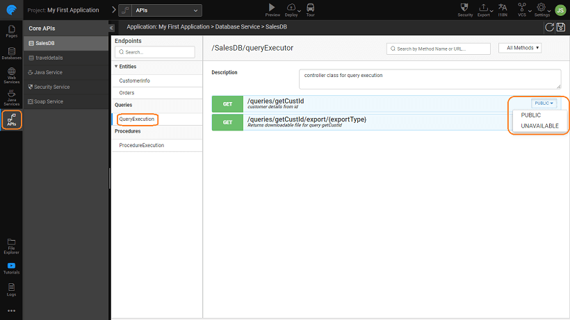 As mentioned in previous documents, there will be a service method generated for each query and procedure. See here for query service methods and procedure service methods. We can use these methods to invoke those in java services.