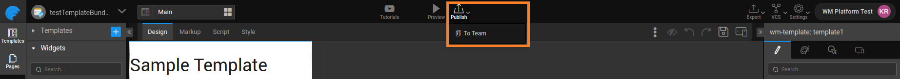 • Team version: Once developed, Template Bundles can be published To Team.