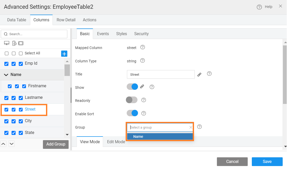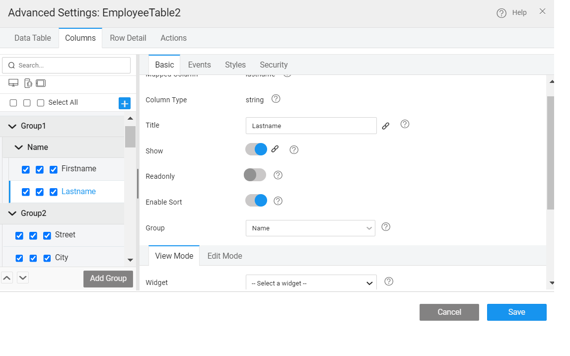All the above-mentioned options are available from the Columns tab of the Advanced Settings property.