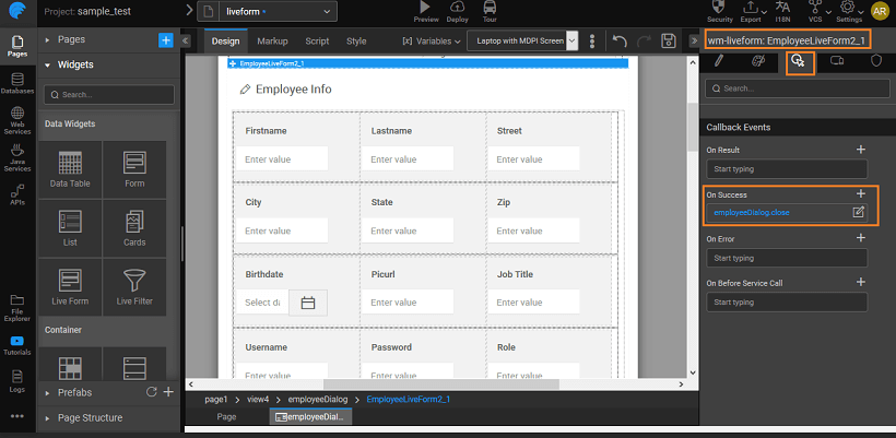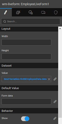 Set the value or bind to another widget like Data Table, List or Live Filter. These define the values that display when the Live Form loads.