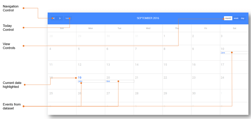 - Enable controls There are five different types of controls on the calendar that can be enabled to: