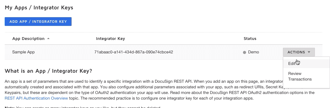 4. Integrator Key: Provide the Integrator Key derived for your Docusign App from the Docusign Admin console.