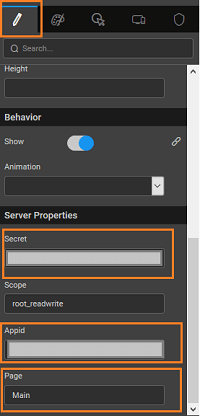 - In the WaveMaker studio, click on Properties. Enter the necessary server properties such as Appid, Secret, and Page for the BOX prefab widget.