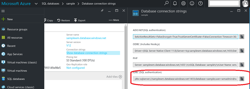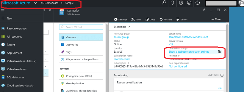 2. Navigate to Microsoft Azure -> SQL databases ->