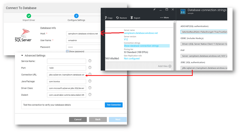 2. Map the WaveMaker connection settings with SQL Server settings