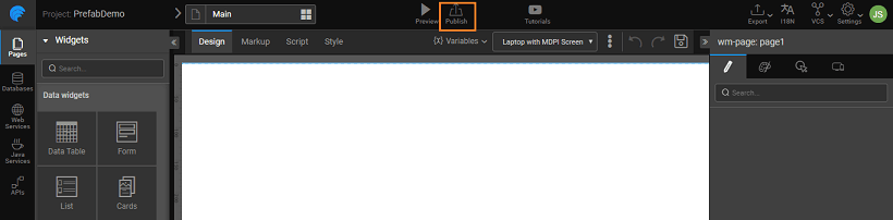 2. The Prefab will be available for use across the Projects. You can see the entry in the Artifacts list from the Developer Utilities on the Project Workspace and in the Widget Toolbox of any Project within your workspace.