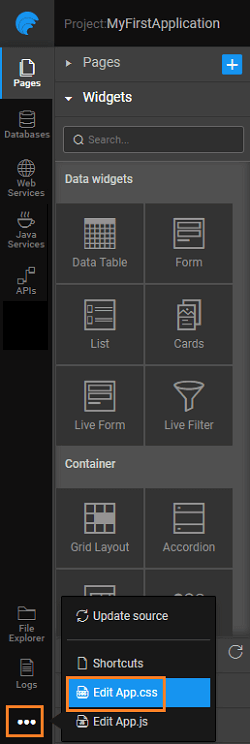 1. Open app.css file from the additional developer tools.