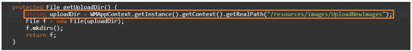 2. Go to Java services and inside getUploadDir method replace the upload directory path.