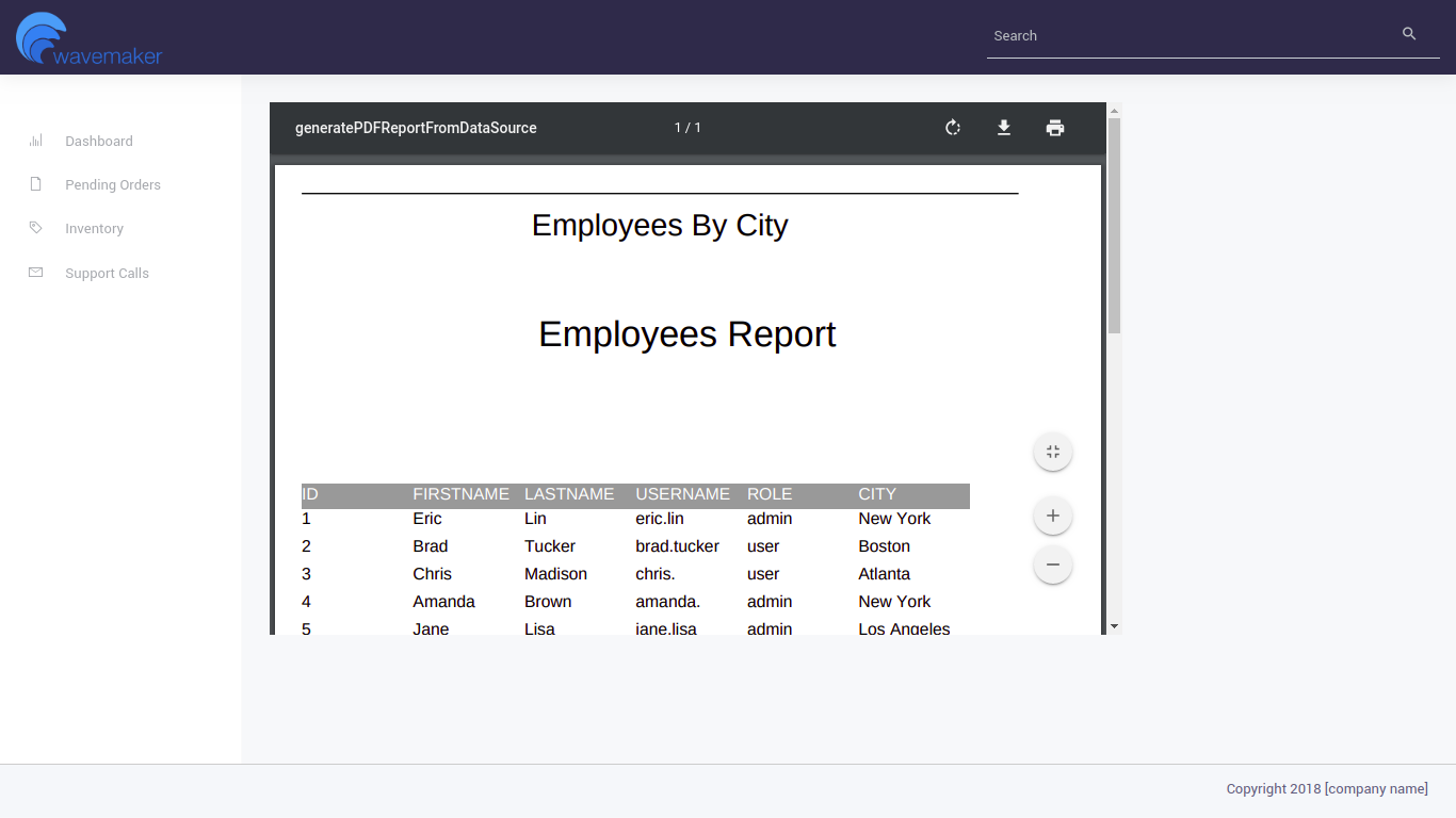 1. Build your report using Jasper Studio, which enables you to build and customize look and feel of the report. Once you design the report export the reportxml(.jrxml) and import into WaveMaker project using Import Resource to the ${ServiceName}/src/ folder