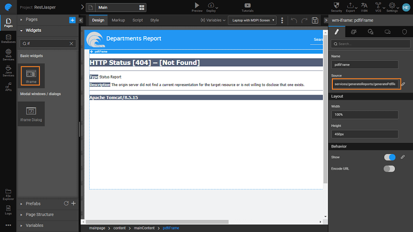 Step 3: In the Main page drag and drop an Iframe onto the canvas.