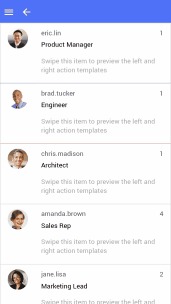 1. On swiping list item, from right to left, right action template will be rendered. Similarly, on swiping from left to right, the left action template renders. All the buttons render proportionately.