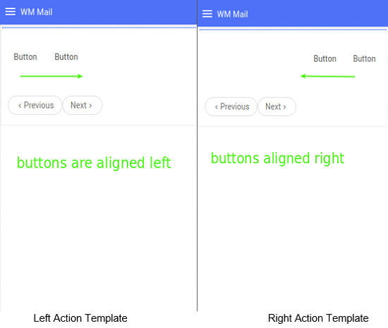 4. Buttons added in LeftActionTemplate are aligned left as shown below and similarly buttons in RightActionTemplate are aligned right.