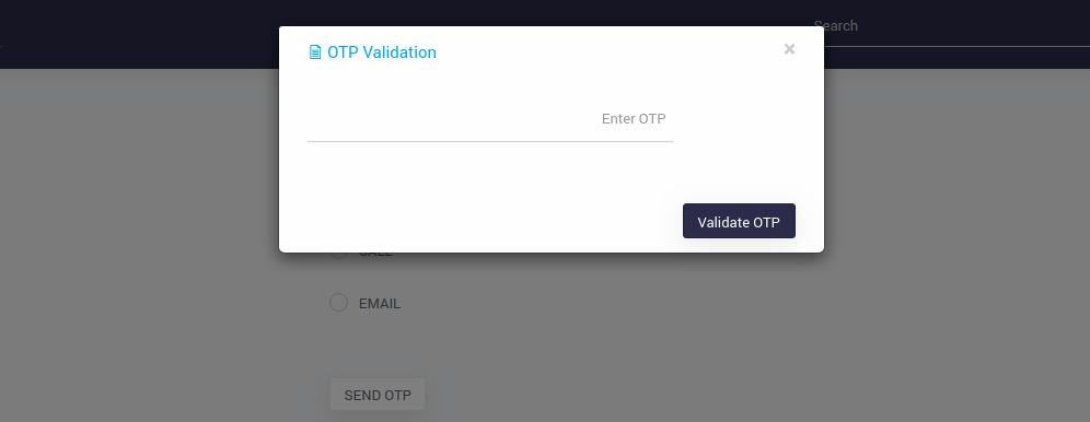 2. Once the credentials are valid, OTP validation is required