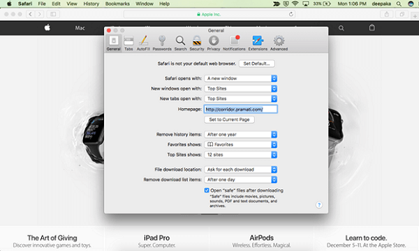 • Open Safari browser > preferences