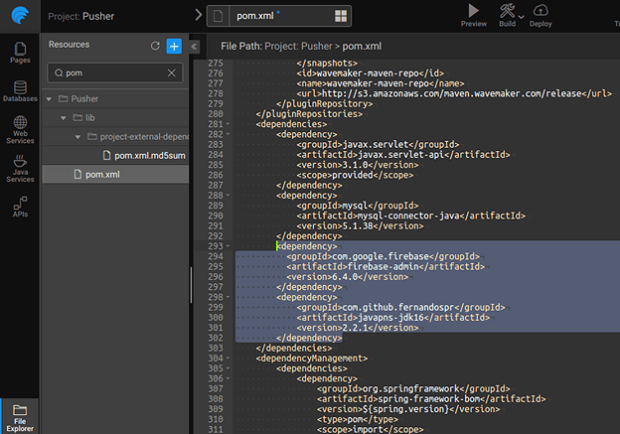 pom.xmland addfirebase-adminandjavapns-jdk16as dependencies as shown below: