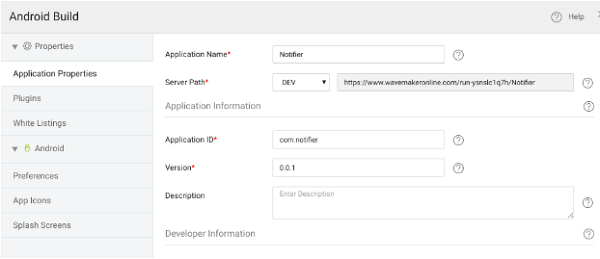 In a WaveMaker application, ‘Application Id’ in ‘Build for Android’ dialog is used as the App Id.