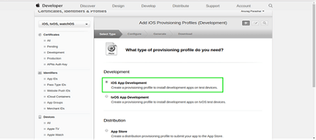 - Select the Account tab to go to Certificates, Identifiers & Profiles.