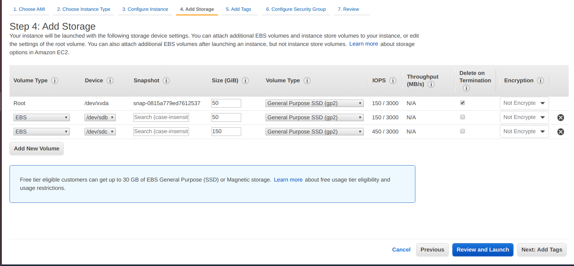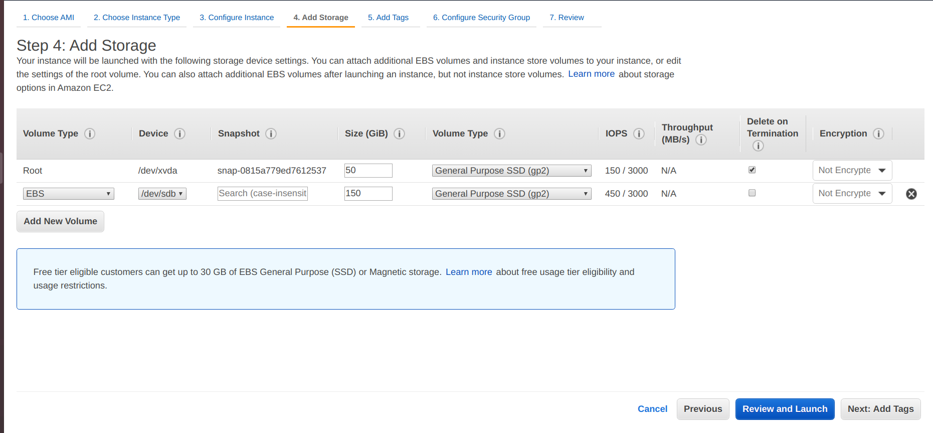 • To mount an attached EBS volume on every system reboot, add an entry for the device to the /etc/fstab file.