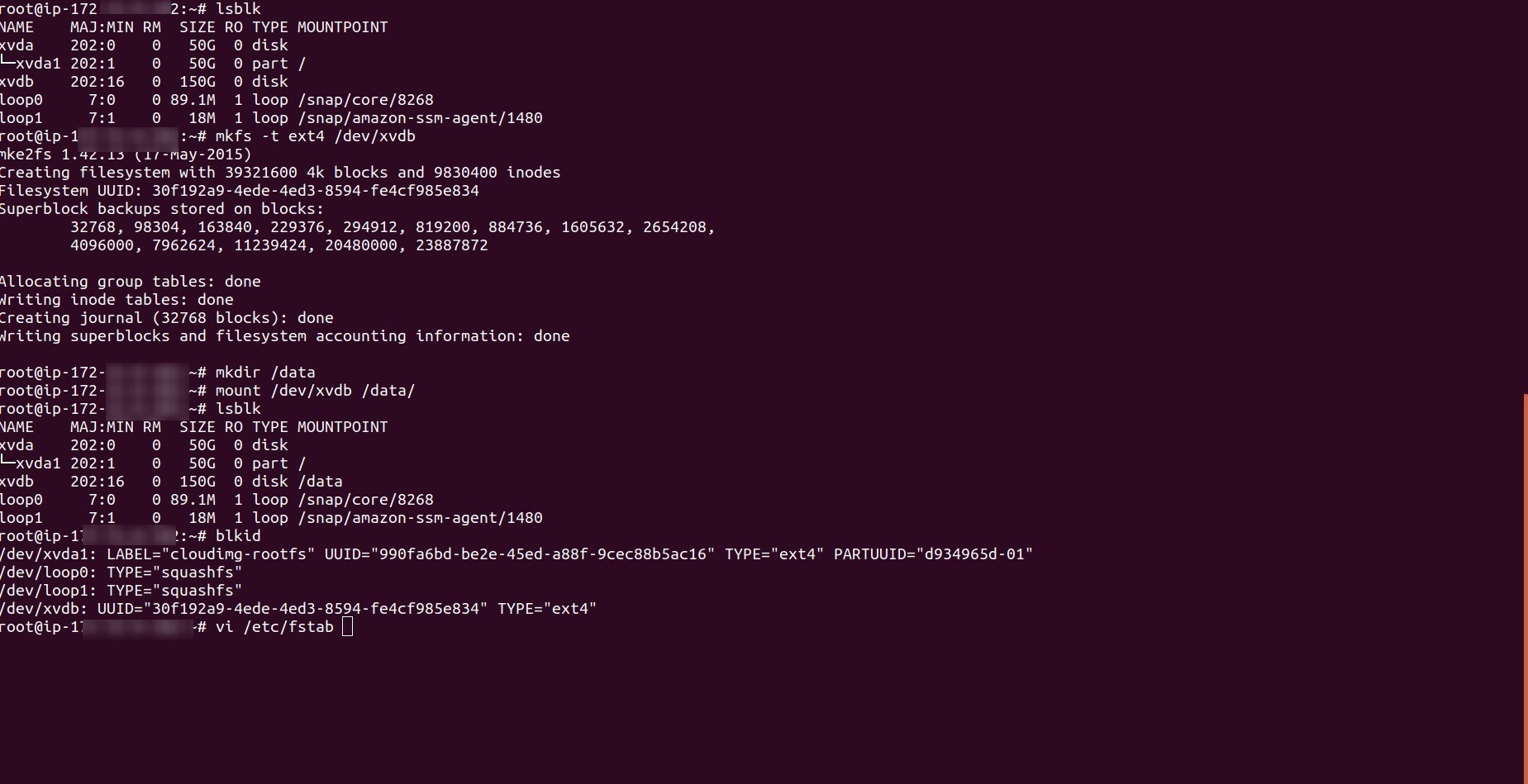 Command : mkfs -t ext4 /dev/<block-device-name>