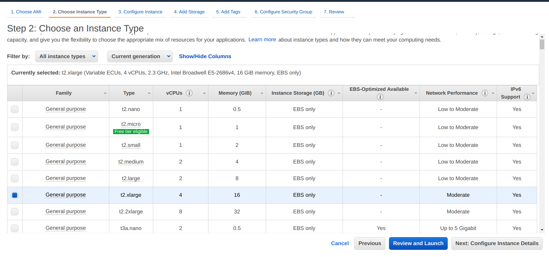 • Choose Launch Instance, choose an ubuntu 16.04 Amazon Machine Image (AMI), or if you have any ubuntu 20.04 AMI, select it.