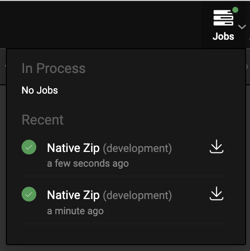 - When the job is completed, you can download the ReactNative zip by clicking on the Download icon, as shown below.