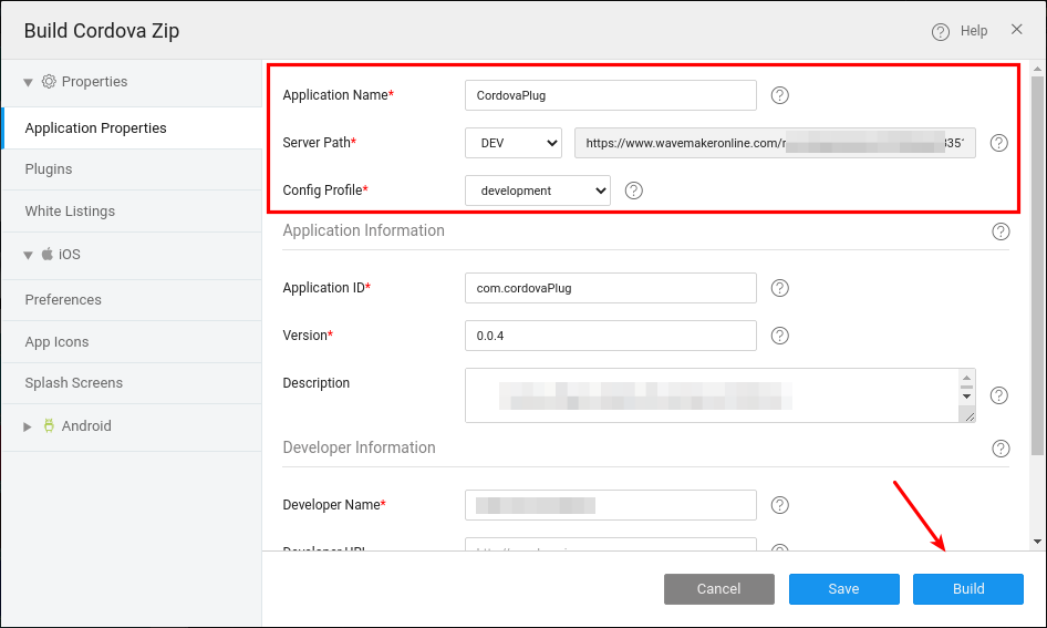 Here, <url> is the application server url. The mobile installer will be generated from this Cordova will make backend calls to the url specified. (Refer the below image)