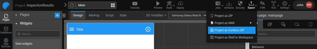 Export Cordova using WaveMaker Studio