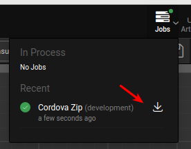 1. When the job gets completed, you can download the Cordova zip by clicking on the download icon as shown in the below image.
